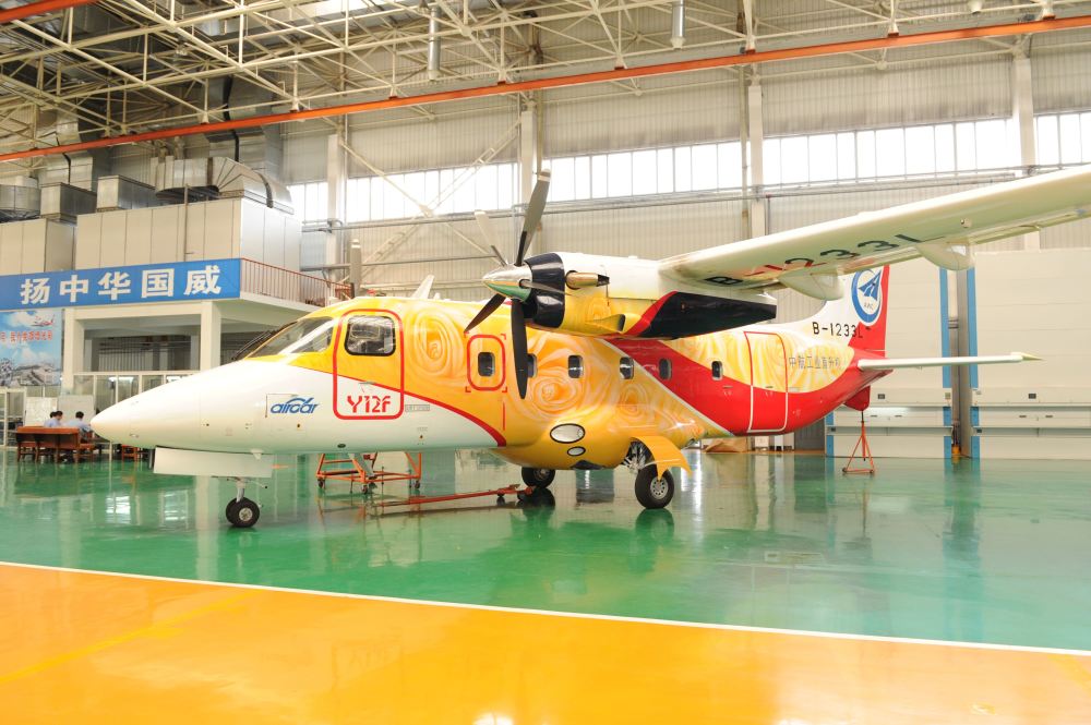 最新改型运-12F是哈飞采用先进技术重新设计研发的新一代通用/支线涡桨飞机,起飞重量提高到8.4吨,商载提高到3吨,最大速度提高到482公里/小时,运-12F是内部悬臂式机翼,换成可收放起落架,大量采用国内外先进部件,可载运19名乘客或3个LD3型集装箱。